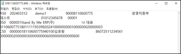 - [전산매체_파일생성] 버튼을 누르면 텍스트 파일이 다운로드 됩니다.