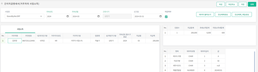 원천징수 > 간이지급명세서 > 간이지급명세서(거주자의 사업소득)