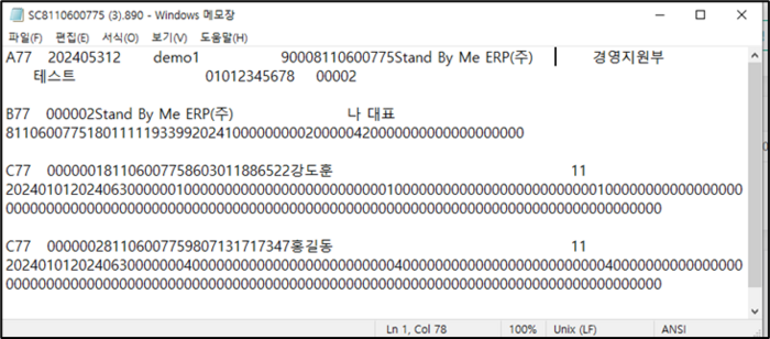 - [전산매체_파일생성] 버튼을 누르면 텍스트 파일이 다운로드 됩니다.