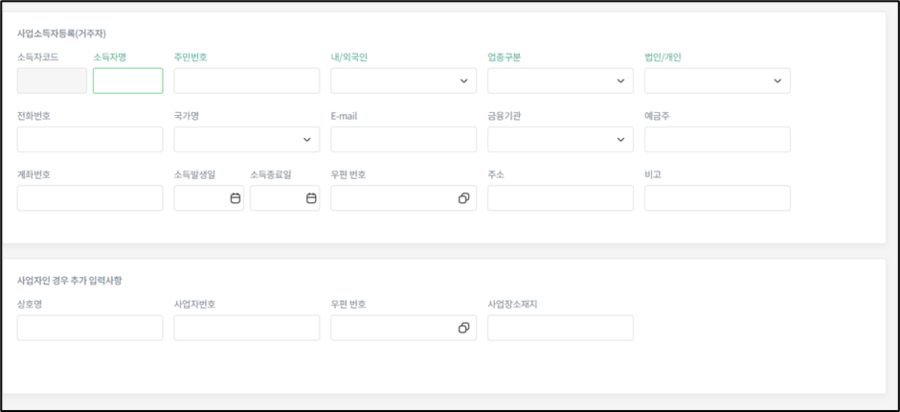 원천징수 > 사업소득 > 거주자 사업소득자 등록