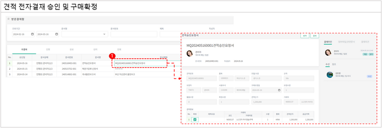 결재 할 견적 문서내역 더블클릭