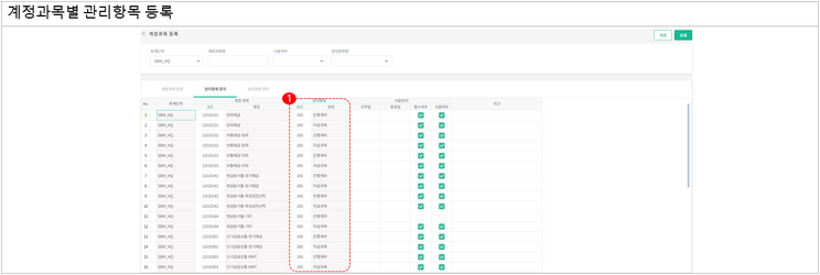 * 계정별 집계가능 관리 항목 지정 프로그램