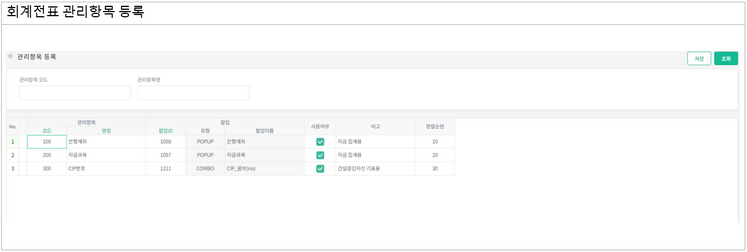 * “계정과목별 관리항목 등록”에서 등록할 관리항목 리스트 등록 프로그램