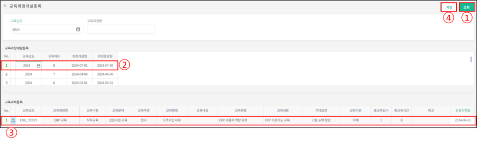 2.교육 과정 정보를 수정하거나, 행을 추가하여 개설 합니다.