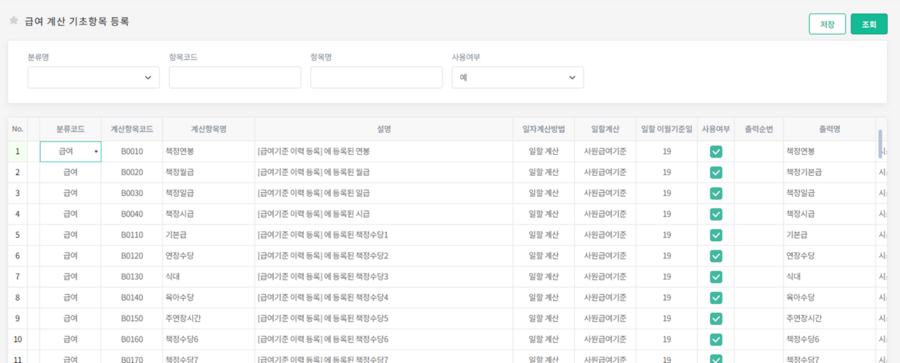 급여 계산 기초항목 등록