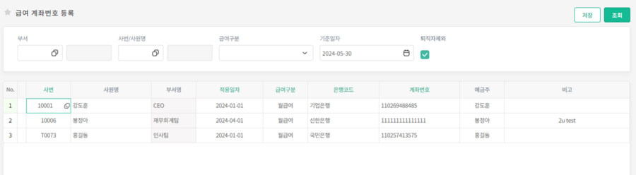 사원별로 급여 계좌번호를 관리할 수 있습니다.