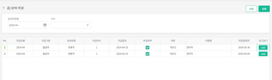 • 급여 마감/마감취소 이력을 볼 수 있습니다.