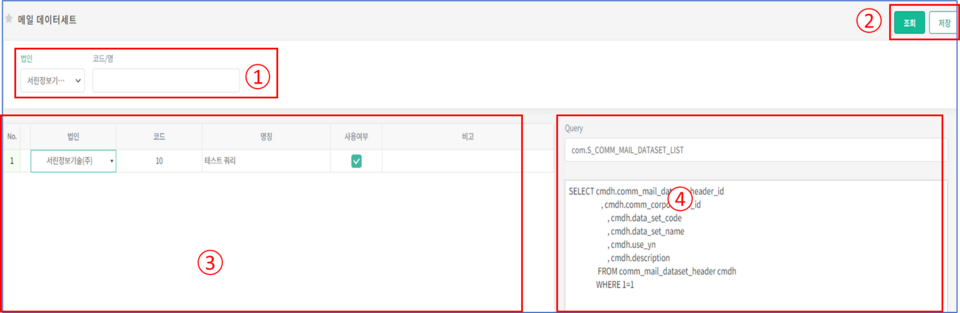 2.조회 저장 버튼입니다.