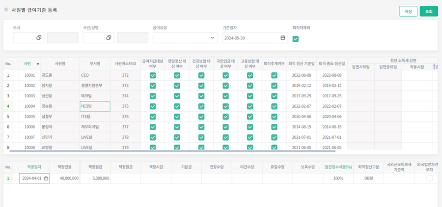 - 사원별로 급여 대상 여부를 설정할 수 있습니다.