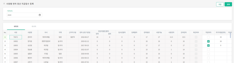 근태 > 연차관리 > 사원별 연차 정산 지급일수 등록