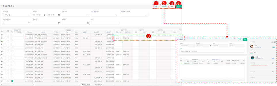 가수금 입금 처리 대상 선택 후 입금 정보 입력(입금가계정은 “가수금” 으로 해야 함)