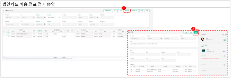 - 저장 및 상신처리 : 승인완료 시, 자동으로 비용전표 생성