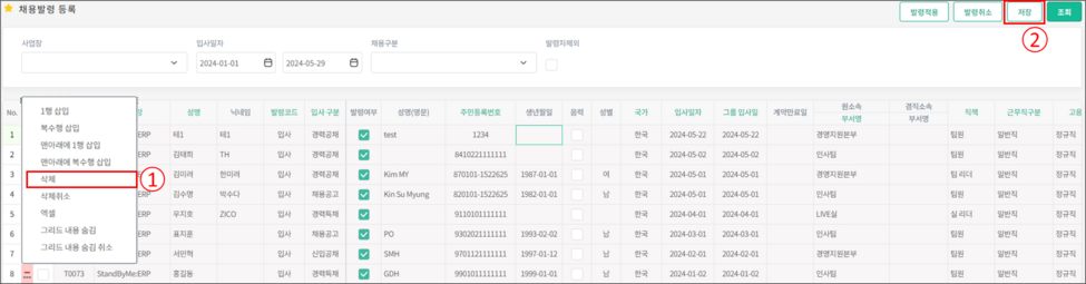채용발령 등록