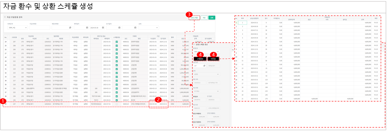 자금환수및상환스케쥴생성