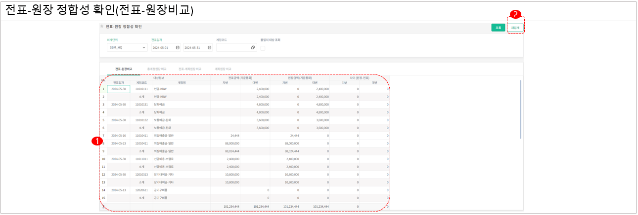전표원장비교