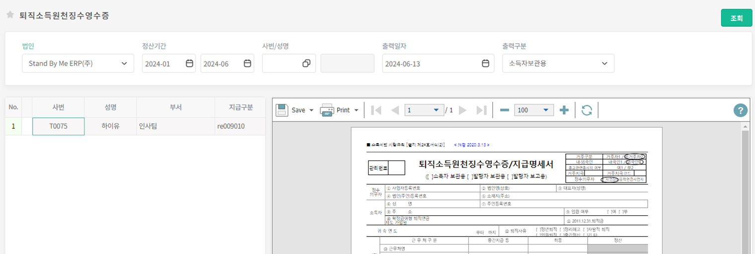 퇴직소득원천징수영수증